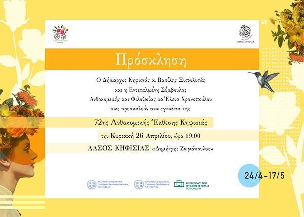 Η φετινή, 72η κατά σειρά, διοργάνωση αποτελεί μια ισχυρή υπενθύμιση της βαθιάς σύνδεσης του ανθρώπου με τη φύση και της διαχρονικής αξίας της ομορφιάς που προσφέρουν τα φυτά και τα άνθη. Το ιστορικό Άλσος «Δήμαρχος Δημήτριος Ζωμόπουλος» μεταμορφώνεται ξανά σε ένα καταφύγιο πρασίνου και αρωμάτων, προσφέροντας μια ανάσα δροσιάς και ηρεμίας στην καθημερινή ζωή. Οι επισκέπτες θα έχουν την ευκαιρία να θαυμάσουν σπάνια είδη φυτών, να ενημερωθούν για τις τελευταίες τάσεις στην κηποτεχνία και να προμηθευτούν φυτά για να ομορφύνουν τους δικούς τους χώρους, ενώ παράλληλα θα ζήσουν την ατμόσφαιρα ενός ιστορικού τόπου. Η Ανθοκομική Έκθεση Κηφισιάς δεν είναι απλώς μια έκθεση λουλουδιών, είναι μια εμπειρία που αγγίζει όλες τις πτυχές του πολιτισμού και της καθημερινότητας. Είναι μια γιορτή της δημιουργικότητας, της φύσης και της κοινότητας, ένα σημείο συνάντησης για ανθρώπους που μοιράζονται την αγάπη για το πράσινο και την ομορφιά.