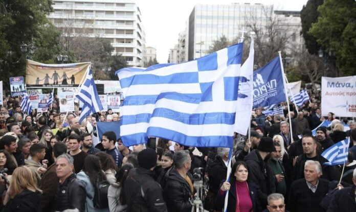 Πλήθος κόσμου συγκεντρώθηκε και διαμαρτυρήθηκε κατά του νέου νομοσχεδίου που προωθεί η κυβέρνηση. Αρκετοί από αυτούς κρατούσαν σημαίες, σταυρούς και εικόνες.