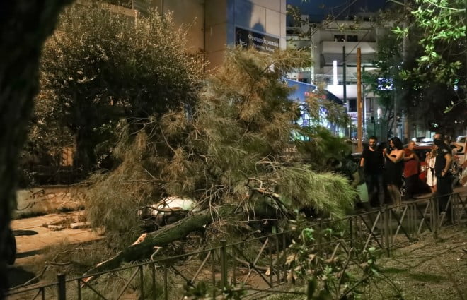Στο σημείο έσπευσαν άνδρες της Πυροσβεστικής, οι οποίοι έκοψαν το δένδρο, ενώ ο άνδρας διακομίστηκε στο νοσοκομείο με ασθενοφόρο.