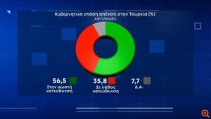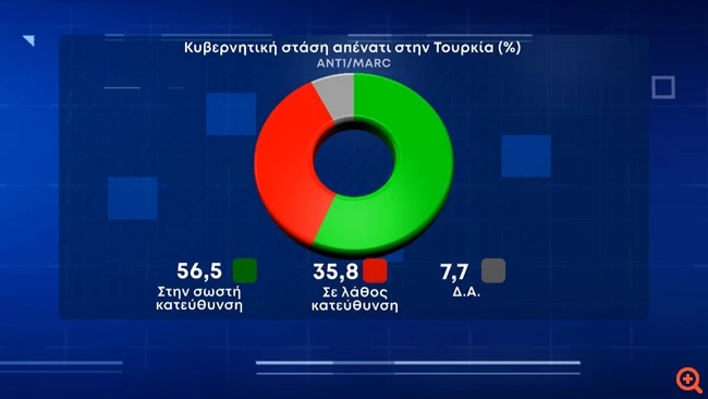 Σε ό,τι αφορά στα ελληνοτουρκικά, σημαντική αποδοχή με ποσοστό 56,5% καταγράφει η στάση της κυβέρνησης. Μάλιστα, 1 στους 3 ψηφοφόρους του ΣΥΡΙΖΑ κρίνει θετικά την πολιτική που ακολουθείται απέναντι στον Ερντογάν, ενώ την ίδια θετική στάση έχουν και το 75% των ψηφοφόρων του ΠΑΣΟΚ/ΚΙΝΑΛ και το 15% των ψηφοφόρων του ΚΚΕ