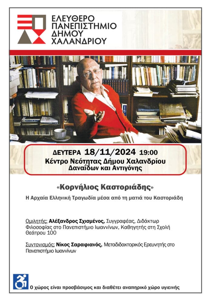 Ελεύθερο Πανεπιστήμιο Χαλανδρίου: Η Αρχαία Ελληνική Τραγωδία μέσα από τη ματιά του Κορνήλιου Καστοριάδη