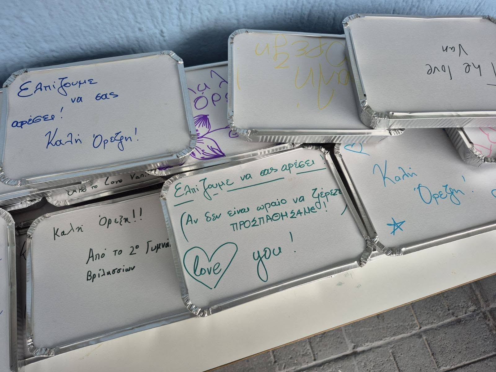 Ιδιαίτερο στοιχείο της πρωτοβουλίας αποτέλεσαν τα σύντομα μηνύματα που οι ίδιοι οι μαθητές έγραψαν πάνω στις μερίδες. Τα μηνύματα αυτά είχαν υποστηρικτικό και ενθαρρυντικό χαρακτήρα, δίνοντας στη δράση μια ακόμα όμορφη και ανθρώπινη διάσταση. Στόχο είχαν όχι μόνο την κάλυψη μιας πρακτικής ανάγκης, αλλά και την ενίσχυση του αισθήματος ότι κανείς δεν είναι μόνος.