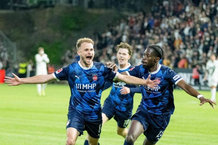 Παραμονή… θρίλερ στην Bundesliga πανηγυρίζει από το βράδυ της Δευτέρας (26/5) η Χαϊντενχάιμ. Η ομάδα του Φρανκ Σμιντ νίκησε με 2-1 εκτός έδρας την Ελβερσμπεργκ στον δεύτερο αγώνα μπαράζ ανόδου/παραμονής στην κορυφαία κατηγορία και σε συνδυασμό με το 2-2 της περασμένης εβδομάδας θα είναι αυτή που και τη νέα σεζόν θα αγωνίζεται στα «μεγάλα σαλόνια». Την ίδια ώρα, η αποψινή της αντίπαλο θα παραμείνει στη δεύτερη κατηγορία και την περίοδο 2025/2026!