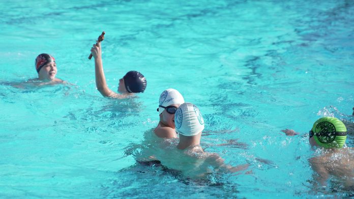 Ακολούθησε ο αγιασμός των υδάτων από τον πατέρα Ιωάννη του Ι.Ν. Αγίου Ελευθερίου και η ρίψη του σταυρού στα νερά της πισίνας.