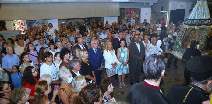 Πραγματοποιήθηκε περιφορά της Ιεράς Εικόνας της Κοιμήσεως Θεοτόκου σε κατανυκτικό κλίμα, συνοδεία της Φιλαρμονικής Ορχήστρας του Δήμου Αμαρουσίου και του Αγήματος του Στρατού, καθώς και εκπροσώπων του Συλλόγου Ποντίων Αμαρουσίου, του Σώματος Ελλήνων Προσκόπων,