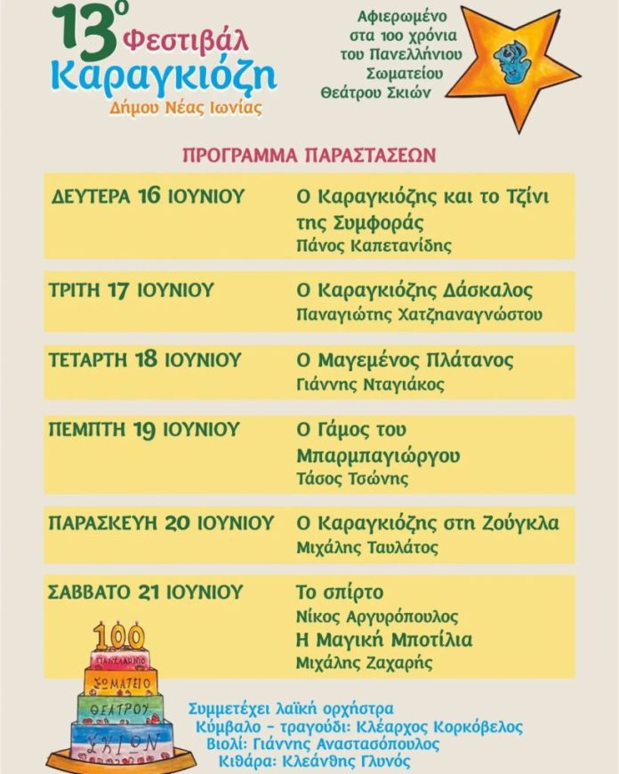 Το φεστιβάλ είναι αφιερωμένο στα 100 χρόνια του Πανελλήνιου Σωματείου Θεάτρου Σκιών και συνεχίζεται καθημερινά έως τις 21 Ιουνίου, με ελεύθερη είσοδο και ζωντανή μουσική σε κάθε παράσταση!