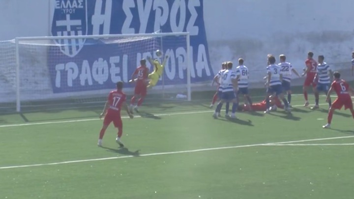 Ένα λεπτό αργότερα, οι φιλοξενούμενοι εκτέλεσαν το κόρνερ, η μπάλα δεν απομακρύνθηκε έφτασε στα πόδια του Αυλωνίτη, ο οποίος έκανε ένα σουτ αλλά ο τερματοφύλακας της Ελλάς Σύρου ήταν ξανά εκεί.