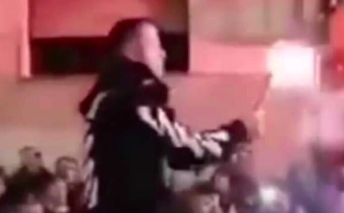Ο Πορτογάλος ήταν εκεί εκ μέρους των παικτών της ομάδας και δεν περιορίστηκε στα… τυπικά αλλά ξεσήκωσε τους πάντες αρχίζοντας να δίνει τον ρυθμό για τα συνθήματα έχοντας στο χέρι και έναν αναμμένο πυρσό.