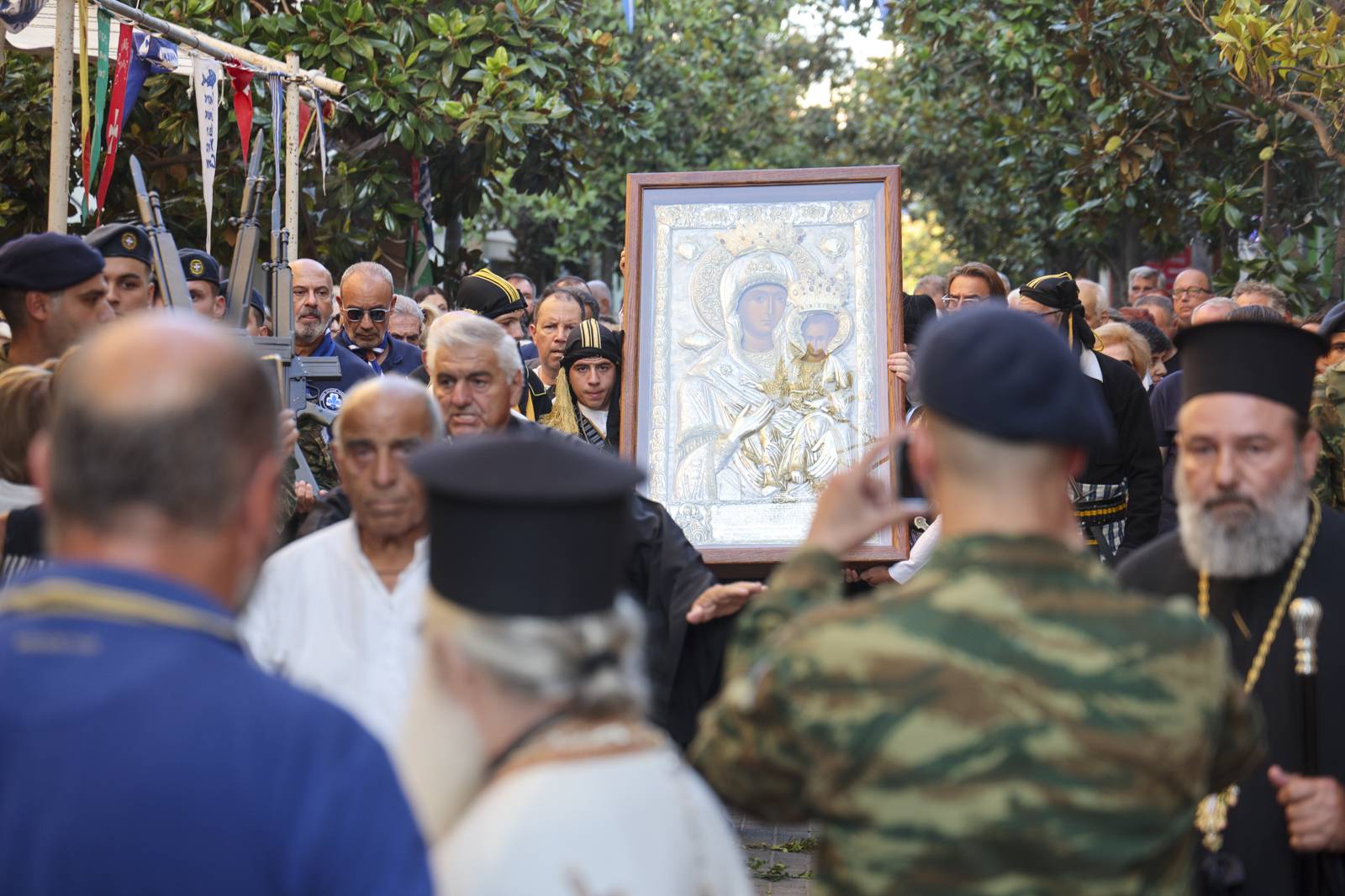 Η υποδοχή τελέστηκε με κάθε επισημότητα, προεξάρχοντος του Σεβασμιωτάτου Μητροπολίτου μας Κηφισίας, Αμαρουσίου, Ωρωπού και Μαραθώνος κ. Κυρίλλου, συλλειτουργούντος και του Πρωτοπρεσβυτέρου π. Μαρούδα, ενώ την Ιερή Εικόνα συνόδευαν τιμητικά άγημα του Στρατού, η Φιλαρμονική Μπάντα του Δήμου μας , καθώς και πολλοί εκπρόσωποι πολιτιστικών συλλόγων του Αμαρουσίου με τις παραδοσιακές ενδυμασίες τους.
